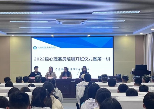 为进一步提升心理委员的工作能力和业务水平,更好地促进学生心理健康成长,11月8日,马克思主义学院心理健康中心在至德楼G106举办了2022级心理委员培训班开班仪式暨第一场讲座,马克思主义学院副院长杨劲艺、大学生心理健康课程中心主任陈艳、南京传媒学院心理健康教育中心教师甘雅琴、学校专职心理教师闫永田及全校2022级心理委员参加了本次开班仪式。