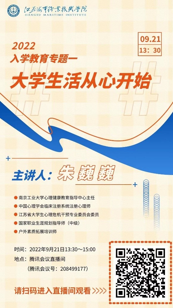 为应对疫情带来的心理健康工作危机,指导心理健康教师更有针对性地开展心理健康工作,提高心理健康委员工作能力。9月21日,马克思主义学院心理中心邀请了南京工业大学心理健康教育中心主任朱巍巍老师为全校心理健康教师、心理健康委员和新生开展了“大学生活从心开始”主题线上讲座。