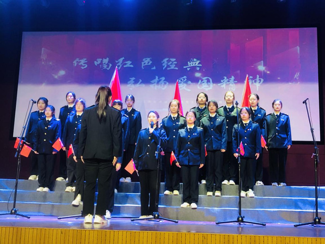 马克思主义学院院长张威在致辞中表示,本次红歌会是一场别开生面的思政大课堂,希望同学们在歌声中重温党的历史,感受信仰的力量,唱响红色经典,抒发爱国情怀!